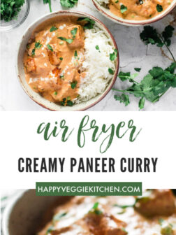 A creamy paneer curry for two, made entirely in the air fryer! Crispy paneer is drenched in a sweet, mild cream sauce. This is a base recipe with lots and lots of variations to try to suit your own tastes and the contents of your fridge!