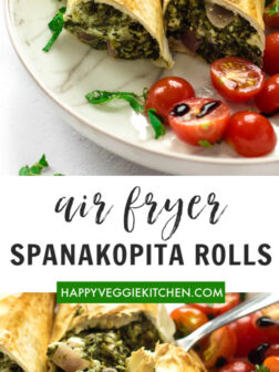 Making a couple of spanakopita rolls in the air fryer was super fast and convenient – they cook in just 15 minutes .