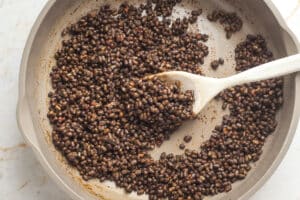 • Normal green or brown lentils are softer so it wouldn’t be quite the same result, but I think it would still work well (if you were cooking them from dried just keep them on the al dente side).