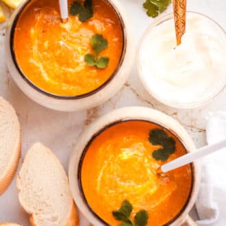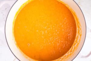 This recipe asks you to roast cubed butternut squash and that’s all well and good if you are using frozen or even a bag of fresh pre-chopped squash. If, however, you’re staring at a large squash that you really don’t want to chop into cubes… I get it. Here is a compromise: just roast the squash in two larger pieces and then scoop the flesh out from the skin. Add the spices and honey in the soup pan. This avoids all the peeling and chopping; it won’t give you quite as much caramelization and depth of flavor but will still be fabulous.