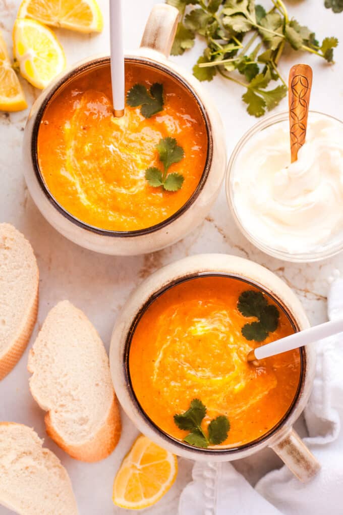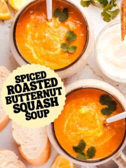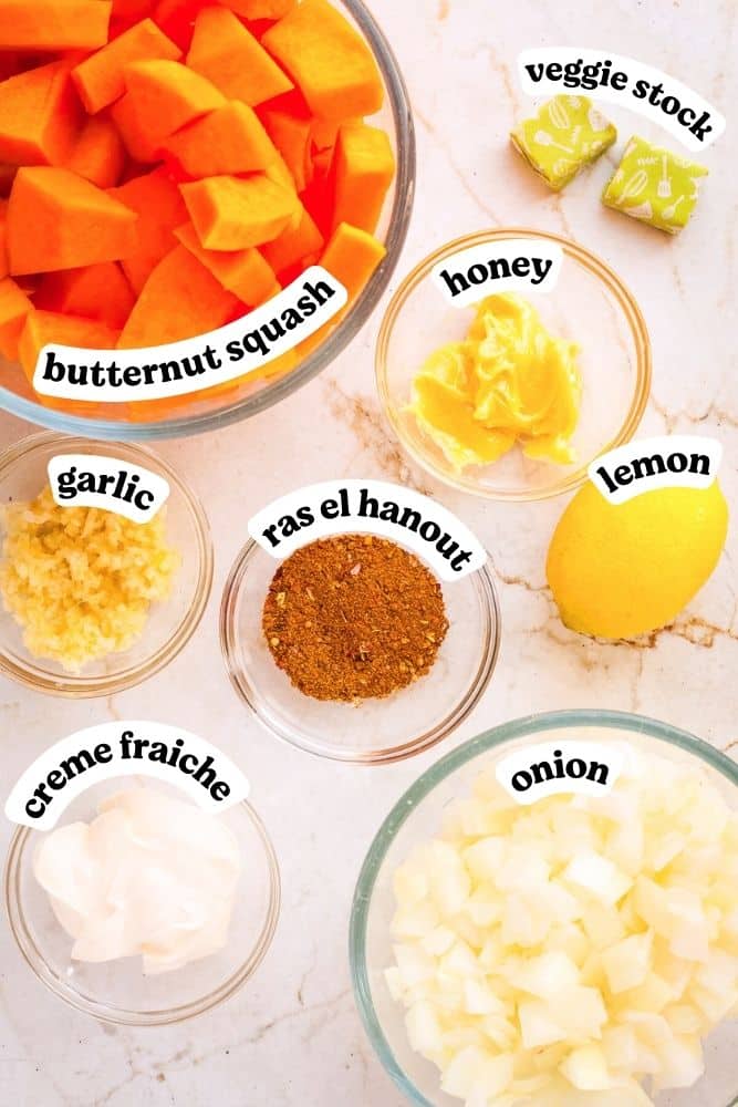 The intense flavor of this soup comes from roasting the butternut squash to bring out its natural sweetness, with honey and ras el hanout (a Moroccan spice blend which turns everything it touches into gold). You can absolutely scale down the spices if you would prefer something more subtle, but I love it on the bolder side.