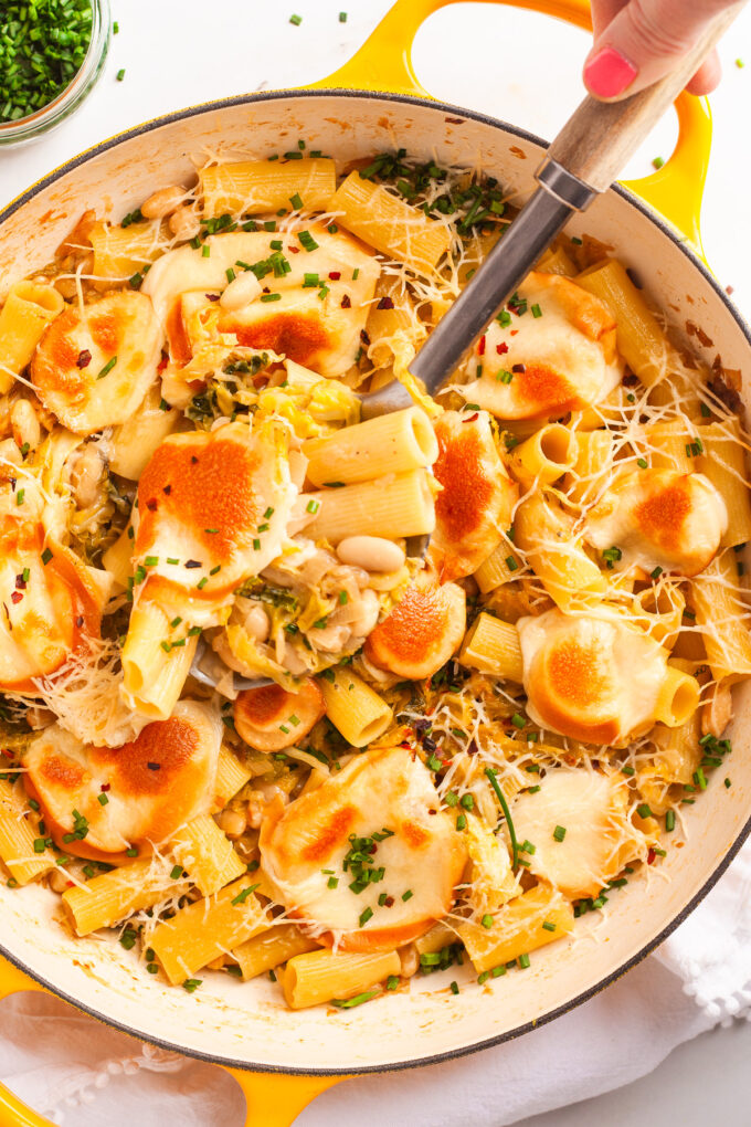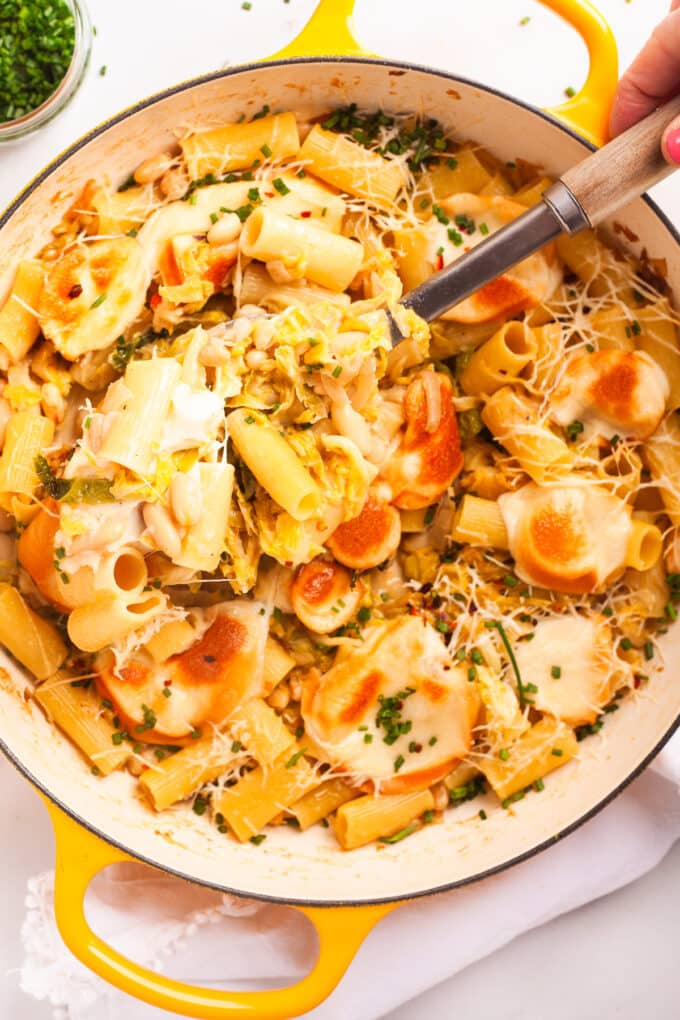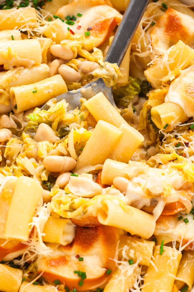 Caramelized Cabbage & White Bean Pasta Bake