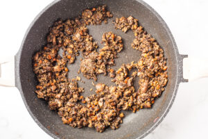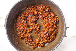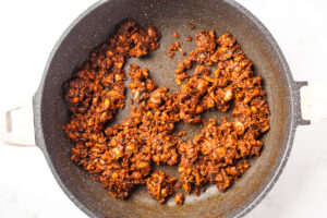 This method of making vegetarian “ground beef” is very simple, but that extra step does make it more of a project than a quick and easy dinner. The fact we’re opening a bottle of red wine to make this sauce helps to soften the blow. (But if you need something more straightforward, my Green Lentil Bolognese recipe could be a better choice.)