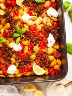 Dinner recipes which come together in one pot or one pan! One pot pastas, one pot casseroles, “dump and bake” recipes, tray bakes, and sheet pan meals.