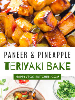 As easy and delicious vegetarian tray bake / sheet pan meal with teriyaki paneer and caramelized pineapple. It comes together easily in one pan with very few ingredients, just put it in the oven and let the magic happen! Pair with coconut rice for an incredibly tasty fusion dinner.