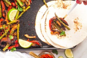 - Serve! Scoop your fajita veggies into warmed tortillas, add a squeeze of lime and your choice of toppings, and enjoy!