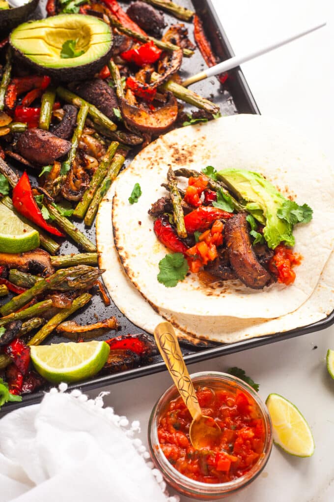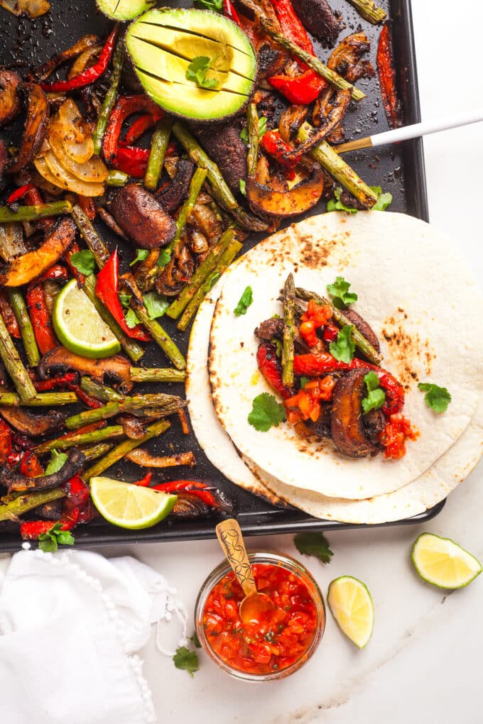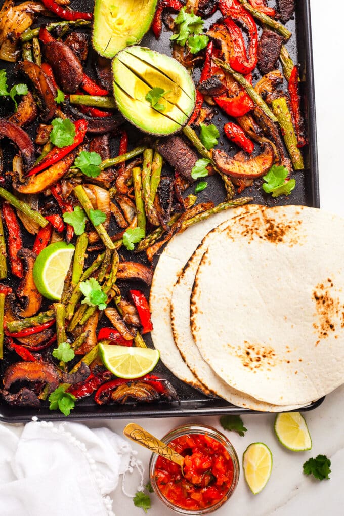 Sheet Pan Veggie Fajitas with Mushrooms & Asparagus