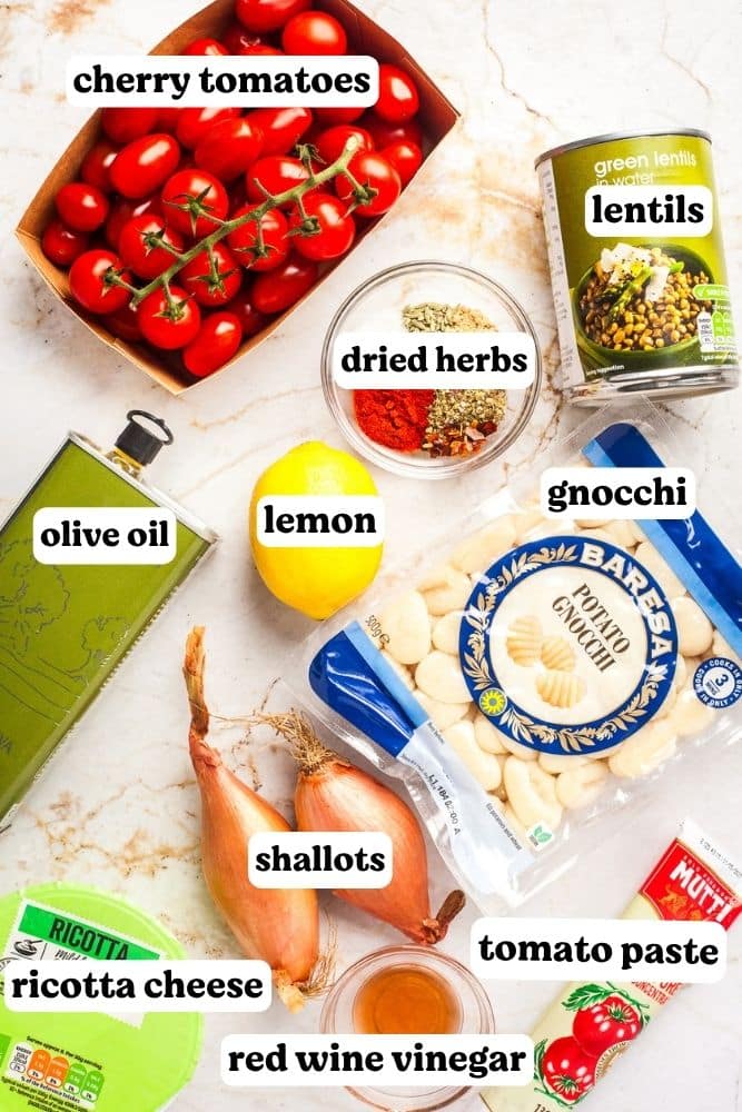 Sheet Pan Gnocchi with Tomatoes, Lentils & Ricotta